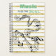 Musikalische Noten Kalender mit goldenen Streifen und Buchstaben in minzgrün und blau. "Title: Musik füllt das Soul", elegante und niedliche Kalendergestaltung © von Nayda Liz Rivera und NLRDesign.