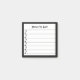 Dieses kleine quadratische 3x3 klebrige Notizblock kann mit einem Namen oder einer Nachricht personalisiert werden. Es steht "Notizen an Selbst", und ist Musik thematisch mit musikalischen Noten auf den Linien. Es kann ein schönes kleine Geschenk für Musiker oder Musikliebhaber machen. Es gibt eine einfache, saubere schwarze Grenze.