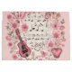 Geschenktasche mit einer Illustration in einem Vintag romantischen Stil. Musikalische Noten, Blume, Schmetterlinge und eine Gitarre. Eine schöne sentimentale Atmosphäre.