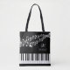 Personalisierte, individuelle Farbtasche mit Klaviertastatur und Musikteam mit Noten in Ihrer Auswahl an Grafiken und Hintergrundfarben (in Weiß auf Schwarz dargestellt) mit einem Monogramm oder Initialen und/oder Namen oder anderen Texten in Ihrer Auswahl von Schriftart Stilen und Farben, um Ihren eigenen Look zu schaffen. Das Design wird auf der Rückseite dupliziert, sodass bei Änderungen manuell auf der Rückseite zu EDIT gewechselt werden kann. HILFE: Für Hilfe bei der Modifizierung oder Personalisierung des Designs, bei Farbänderungen, bei der Übertragung des Designs auf ein anderes Produkt oder wenn Sie die Dinge koordinieren möchten, wenden Sie sich bitte an den Designer, BEVOR Sie die Bestellung über die Registerkarte Zazzle Chat MESSAGE unten durchführen, oder per E-Mail an makeitaboutyoustore@gmail.com.