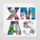 Farbige Alphabetbriefe , skurrile künstlerische Weihnachtsmonogrammgestaltung mit original Acrylgemälden , Snowman und Penguin's Serenade , Weihnachtsklaus in der schneebedeckten Winternacht , Gelbmond , Sterne , Blumenschmuck , Winterbaum, Weihnachtsbaum, Ballons, Heilige Beeren in hellrot, grün, weiß, blau, gelb, gelb.