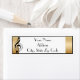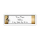 Für den Musikliebhaber in jedem. Dieses Etikett hat einen dünnen schwarzen Rahmen, der auf beiden Seiten goldfarbene Streifen aufweist. Für die links ist ein Musiker und Noten.