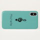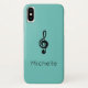 Musiksymbolgerät mit einem niedlichen schwarzen Treble-Set auf einem aquamarinen grünen Hintergrund. Mit schwarzer Schrift können Sie mit Ihrem eigenen Namen personalisieren. Ideal, um eine musikalische Touch zu Ihrem Handy hinzuzufügen.