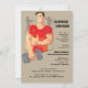 Die Einladung eines Mannes, die einen Mann in einem roten T - Shirt mit den enormen Muskeln, anhebende Gewichte kennzeichnet. Im Hintergrund sind zwei Bilder des Mannbiegens. Eine große Einladung für den Muskelerbauer Enthusiasten.