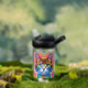 Adorable orangefarbene Katze mit grünen Augen mit mystischem Hintergrund KI generiert Kunst.
