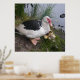 Ein Foto einer Mutter, die Muscovy Duck und ihre Entenlinge unter ihr sitzen.