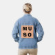 Tragen Sie diese stilvolle Denim-Jacke mit musikalischem Flair. Die Jacke hat eine Pfirsichplatte auf der Rückseite, mit dem Wort "Muso (bedeutet Musiker oder Musikliebhaber) in schwarzen Hauptstädte Buchstaben. Ob Sie ein klassischer Musikliebhaber, Jazzliebhaber oder Rockgitarrist sind, die "Muso"-Jacke ist ein einfaches und modernes Statement. Eine solide Wahl des Geschenks, um bei Musikern zu reflektieren.