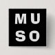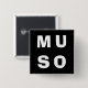 Ein Knopf mit minimalistischem Text-Design von Buchstaben bilden das Wort "muso", was ein Musiker bedeutet. Die Buchstaben der Hauptstadt sind auf schwarzem Hintergrund weiß.