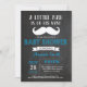 Mustache Baby Dusche Einladung. Kleiner Mann. Blau und Grau. Hintergrund schwarz und weiß Chalkboard. Fliege. Sehr geehrter Herr. Für weitere Anpassungen klicken Sie bitte auf die Schaltfläche "Anpassen" und verwenden Sie unser Designwerkzeug, um diese Vorlage zu ändern.