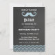 Einladung zum Geburtstag für Jungen mit Schnurrbart-Design und Chalkboard-Hintergrund.