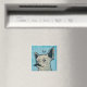 Quirky Schnurrbart Hundekunst auf pastellblauen Backsteinen Hintergrund, um mit Ihren Initialen oder Namen anpassen.
