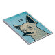 Quirky Schnurrbart Hundekunst auf pastellblauen Backsteinen Hintergrund, um mit Ihren Initialen oder Namen anpassen.