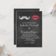 Der lustige Schnurrbart und die Lippen unterstreichen diese trendige Hochzeitseinladung auf illustriertem Chalkboard-Hintergrund.