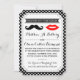 Diese Schnurrbart und Lippen Thema Hochzeit Einladungen sind Retro Hipster niedlich! Die Karten sind mit Schnurrbart und Lippen, Kalligrafie, moderner Typografie, einer Bandflagge und einem verzierten Rahmen über einem schicken schwarz-weißen Polka-Punktmuster Hintergrund ausgestattet.
