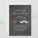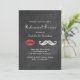 Ein lustiger Schnurrbart und Lippen, auf einem illustrierten Chalkboard Hintergrund, betonen diese Probe Dinner Einladung. Scrollen Sie nach unten, um die komplette Auflistung zu sehen.