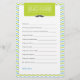 Diese Wünsche für eine Babykarte sind eine unterhaltsame Aktivität und halten für jede Babydusche. In einem grün-blauen Farbschema zeigt es eine Schnurrbart-Abbildung. Die perfekte Ergänzung zu einer Babydusche mit dem Thema "Kleiner Mann"! Weitere Spiele und passende Artikel finden Sie unter www.zazzle.com/mypartydesign