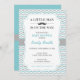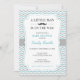 Moderne Babydusche Einladung mit türkisfarbenem, grauem Zickzack Muster und dunkelgrauem Schnurrbart. Ideal für einen kleinen Mann oder "Mustache Bash" Babydusche zum Thema "Kleiner Mann" oder "Mustache Bash".