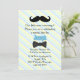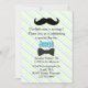 Whimsical Babys erste Geburtstagsfeier Einladung in einem pastellblauen, grünen, gelben und weißen diagonalen Streifen, mit einem Schnurrbart kleinen Mann Thema. Personalisieren Sie den Text für den besonderen Tag Ihres Sohnes.