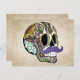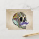 Handgezeichnete Tinte Illustration eines Tages des Toten Zuckerschädels, der einen spitzen Schnurrbart trägt! Fügen Sie Text zu personalisieren und Sie haben eine phantastische Postkarte got! Dies ist die Farbversion - es gibt auch eine Schwarz/Weiß und Vintage Version, sodass Karo aus allen verfügbaren Designs und Produkte!