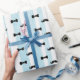 Mustache und Bow Krawatte Blau und Weiß Streifen G Geschenkpapier