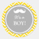 Ein Produkt für Babydusche mit Schnurrbart und Zickzack in goldgelben und grauen Farbkombinationen