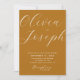 Feiern Sie Ihren Tag mit dieser mürrisch-braunen, minimalistischen Hochzeitseinladung mit elegantem Kalligrafieschrift in einem warmen, erdigen Hintergrund. Die Rückseite beinhaltet Platz für ein persönliches Foto und einen QR-Code, um die Gäste mit Ihrer Hochzeitswebsite oder Ihrer UAWG zu verbinden. Dieses vielseitige Design ist perfekt für rustikale, Herbst-, Herbst-, Herbst-, Boho- oder moderne Hochzeiten. Der reiche Ton, auch als goldener Ocker oder goldener Bernstein bekannt, erinnert an natürliche saisonale Eleganz. Erhältlich in gedruckten und digitalen Download-Formaten.