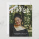 Foto Abschluss Einladung mit Absolvent in einem eleganten Schriftart mit einem kleinen Graduierungshülse auf dem a. Moderner typografischer Abschluss personalisiert mit drei Fotos, eins groß auf der einen und zwei kleiner auf der anderen. Duale Abschluss Einladung und Abschluss Ankündigung gedruckt mit einem großen Foto des Absolventen auf der einen Seite, und die Einladung in weiß und Senfgelb auf der anderen Seite.