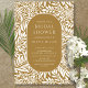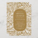 Modernes Blatt- und Blume-Muster mit einem stilvollen ovalen Rahmen Ihre Party-Informationen in Mustard und Weiß.
