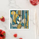 Mustard Yellow Aquamarin Blue Pinguin in Retro Geo Serviette