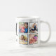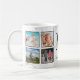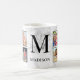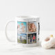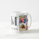 Erstellen Sie Ihre eigene personalisierte 8-Foto-Collage Kaffee-Tasse mit Ihren individuellen Bildern, Monogrammen und Namen auf einem eleganten, weißen Marmorhintergrund.