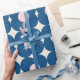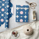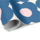 Dieses stilvolle Verpackungspapier zeichnet sich durch ein niedliches geometrisch-geometrisches Blumenmuster in Blau und Rosa aus.