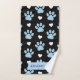 Muster, blaue Paws, weiße Herzen, Ihr Name Badhandtuch Set