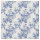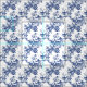 Ein in Blau und Weiß gehaltenes Toilmuster mit blühenden Blume und abgerundeten Zweigen, illustriert in einem Vintagen Stilstil.