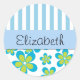 Muster der Blume, blaue Streifen, Ihr Name Runder Aufkleber