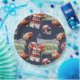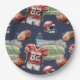 Steigern Sie Ihr amerikanisches Fußballspiel mit unserem Sportausrüstungsmuster-Design! Mit Fußballhelmen, Jerseys und einem Stadion auf dunkelblauem Hintergrund hebt sich dieses Aquarellmuster in Rot und Weiß vom Fußballfeld ab.