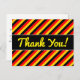 Dieses Postkartendesign weist ein Muster von schwarzen, roten oder gelben Streifen (oder Linien) auf. Diese Farben wurden durch die Landesflagge Deutschlands inspiriert. Das könnte ein großartiges Geschenk für jemanden aus Deutschland sein, oder sogar für jemanden, der das Land Deutschland wirklich sehr mag. Es enthält auch die wertvolle Nachricht "Danke!" auf der Vorderseite in gelben skriptähnlichen Text, zusammen mit einer benutzerdefinierten Dankesbotschaft auf der Rückseite.