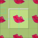 Ein Paar leuchtende rote Lippen mit einem kleinen Funkeln und einer lila und gelben Kontur. Feine weiße Highlights verleihen ihm einen glänzenden Look.