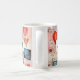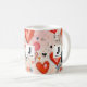 Eine Tasse mit einem lustigen Mixed Media Style Muster. Große rote Herzen und verschiedene zufällige Formen verstreut um ein wunderbar niedliches Muster zu machen.