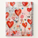 Spiral Notebook mit einem lustigen Mixed Media Style Muster. Große rote Herzen und verschiedene zufällige Formen verstreut um ein wunderbar niedliches Muster zu machen.