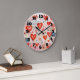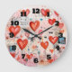Eine Uhr mit einem lustigen Mixed Media Style Muster. Große rote Herzen und verschiedene zufällige Formen verstreut um ein wunderbar niedliches Muster zu machen.