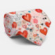 Gemusterte Krawatte mit einem lustigen Mixed Media Style Muster. Große rote Herzen und verschiedene zufällige Formen verstreut um ein wunderbar niedliches Muster zu machen.