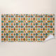 Dieses gemusterte Strandtuch im Retro-Stil der 70er Jahre ist mit braunen, aquamarin blauen, weißen und zwei Orangetönen geschmückt. Ein wahrer Blickfang, wenn er im Sand aufgestellt ist!