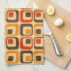Muster der Retro-Quadrate - rot, braun und orange Geschirrtuch