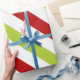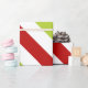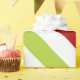 Das moderne Verpackungspapier-Design mit breiten diagonalen Streifen in dunkelrot, kalk-grün und weiß ist festlich und lustig.