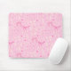 Coquette und skurrile Mousepad mit handgezeichneter Abbildung von rosa Bögen und Herzmustern.