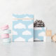 Mein originelles digitales Kunstdesign von skurrilen weißen Wolken in einem sich wiederholenden Muster auf blauem Hintergrund.