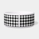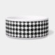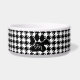Eine Hundeschüssel mit einem klassischen Schwarz-Weiß-Hahnentrittmuster-Muster und einem stilvollen schwarzen Pfoten-Druck auf Monogramm mit den Haustieren zu Beginn.