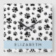 Muster, Dog Paws, Schwarz und Weiß, Ihr Name Quadratische Wanduhr