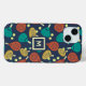Dieses Handy-Gehäuse ist bereit, um auf Ihre Wahl der ersten und mit einem Muster von Pdel-Tennis Schläger und Kugeln in den Tönen Terra Cotta, Gold, aquamarin, gelb und Creme vor einem marinebasierten Hintergrund.