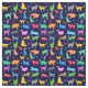 Muster farbenfroher Katzen. Navy Blue Background Stoff